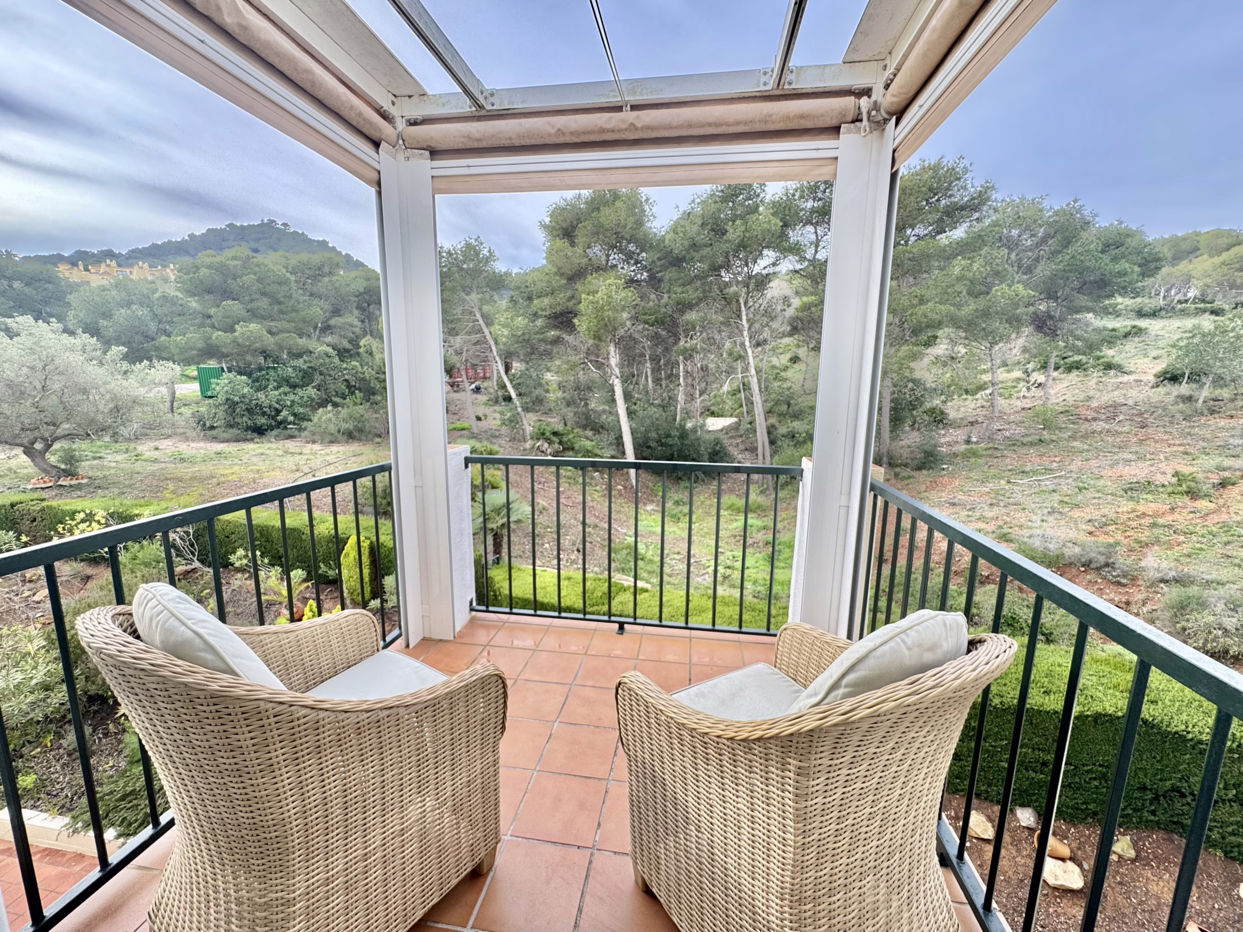 From the dining area, doors open onto a private rear terrace with tranquil forest views, an ideal spot for morning coffee or relaxed outdoor dining. The living room leads to an enclosed terrace, creating a versatile additional space that can be enjoyed year-round.