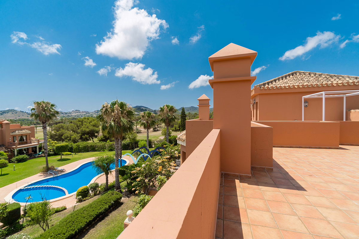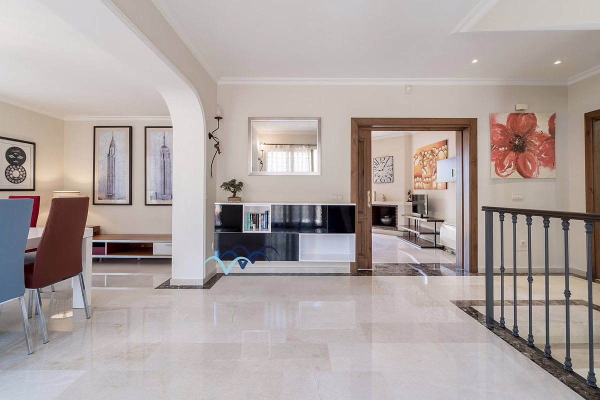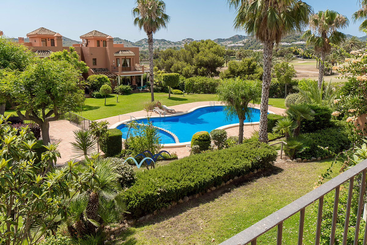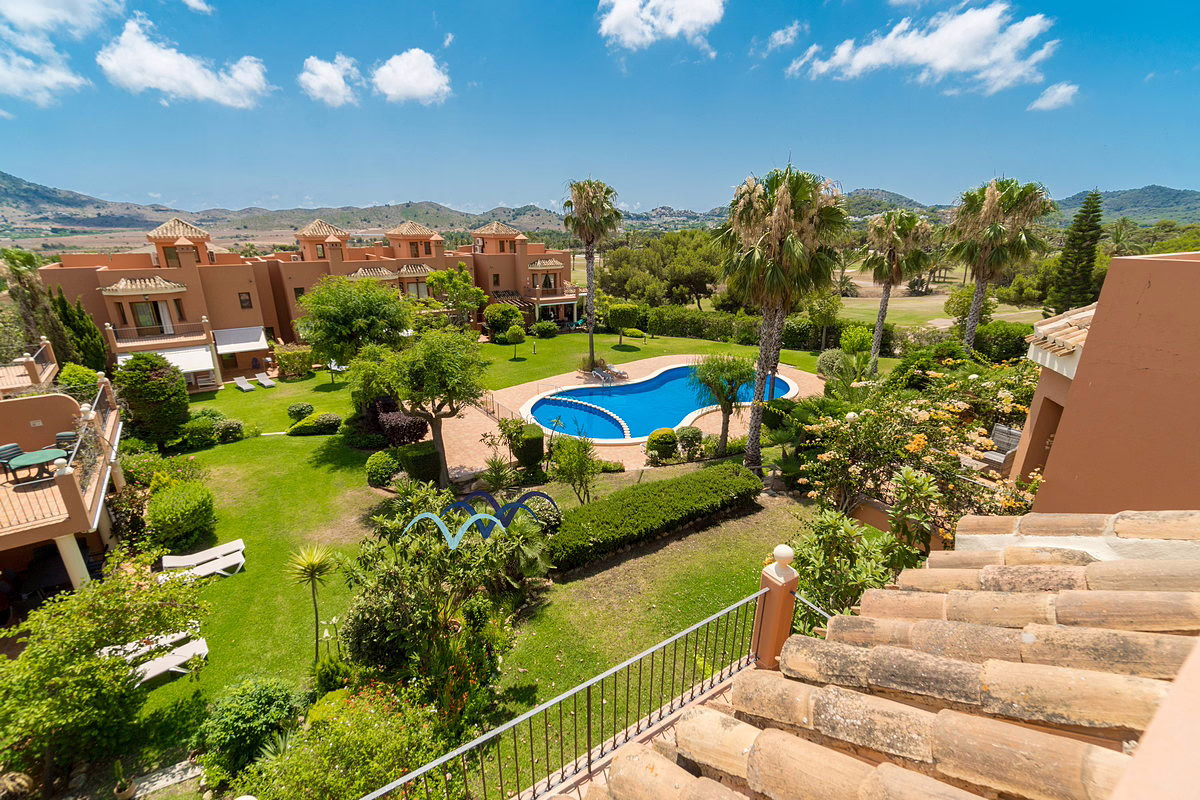 Spacious villa located within the gated community of Coto de Golf Pueblo at La Manga Club. This beautiful home features a large double garage and a generous garden just a few meters from the community swimming pool, perfect for relaxation and outdoor activities.