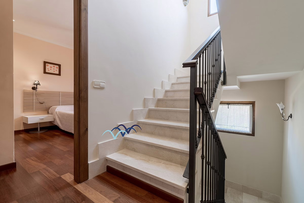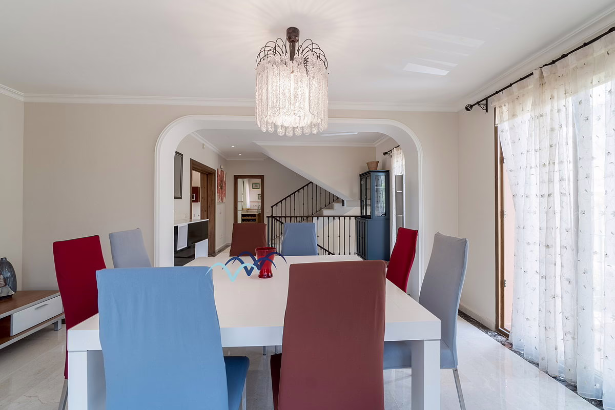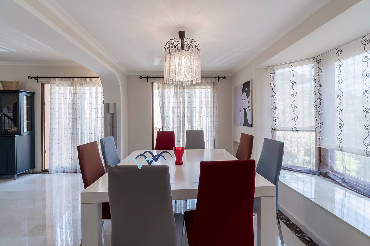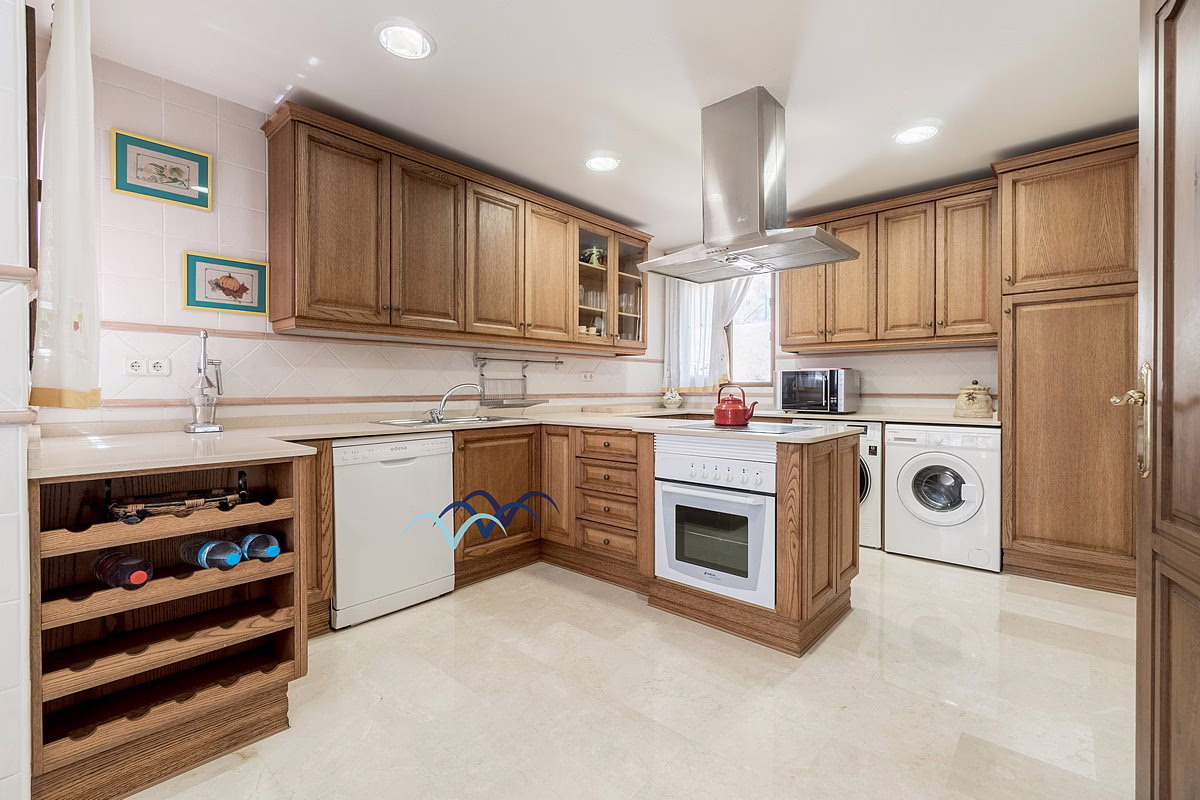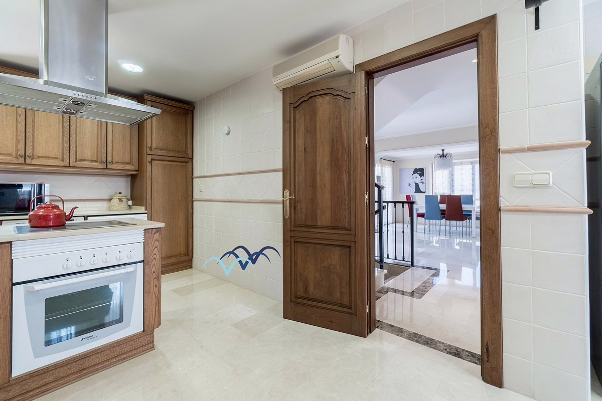 Inside, you’ll find marble flooring throughout most of the house, giving it an elegant and bright atmosphere. The kitchen is large and fully equipped, ideal for family meals and entertaining guests. The bedrooms include built-in, fully lined wardrobes offering ample storage space.