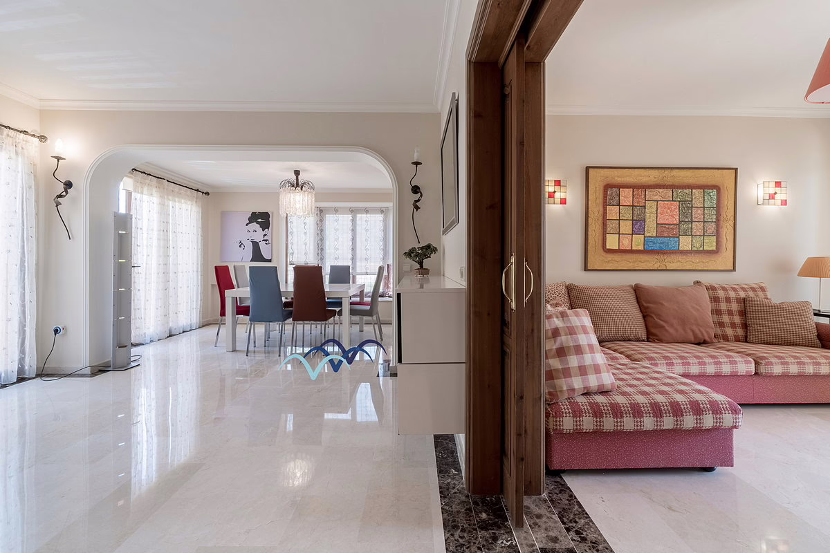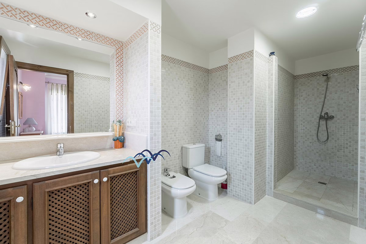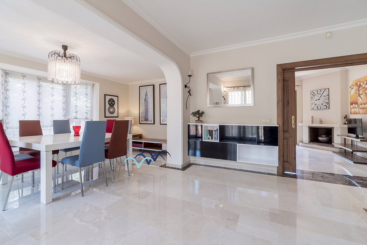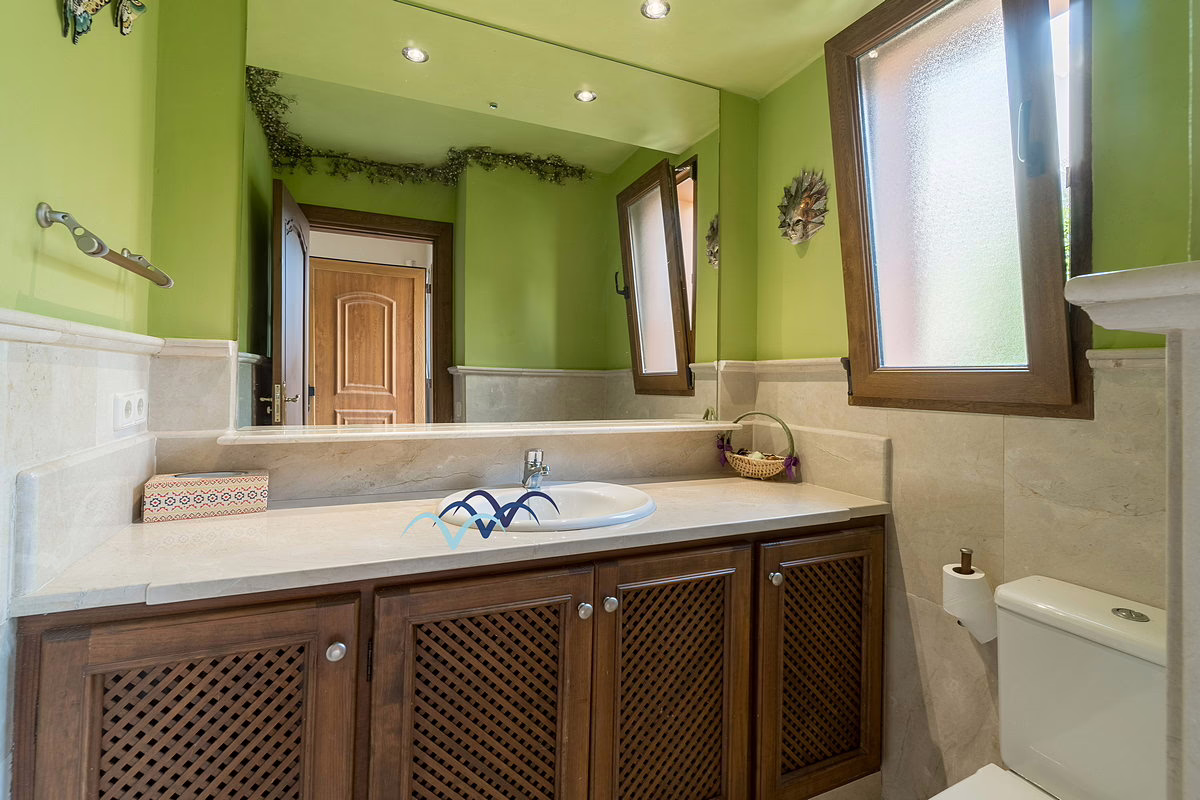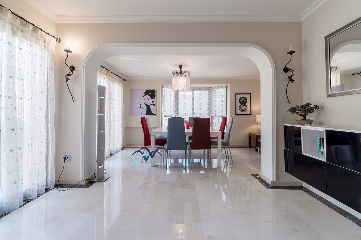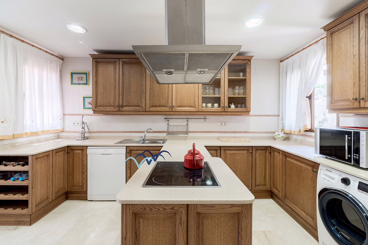 Inside, you’ll find marble flooring throughout most of the house, giving it an elegant and bright atmosphere. The kitchen is large and fully equipped, ideal for family meals and entertaining guests. The bedrooms include built-in, fully lined wardrobes offering ample storage space.