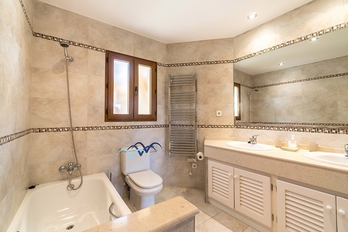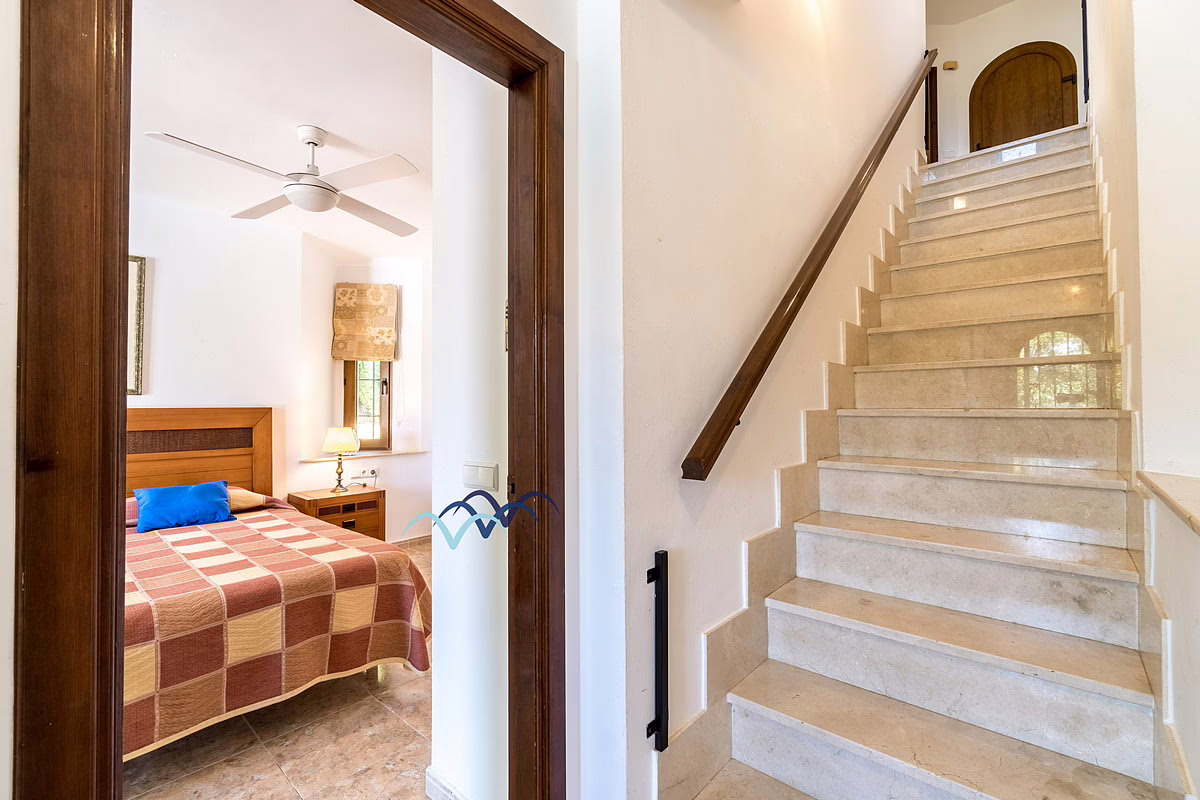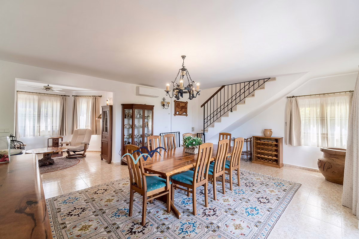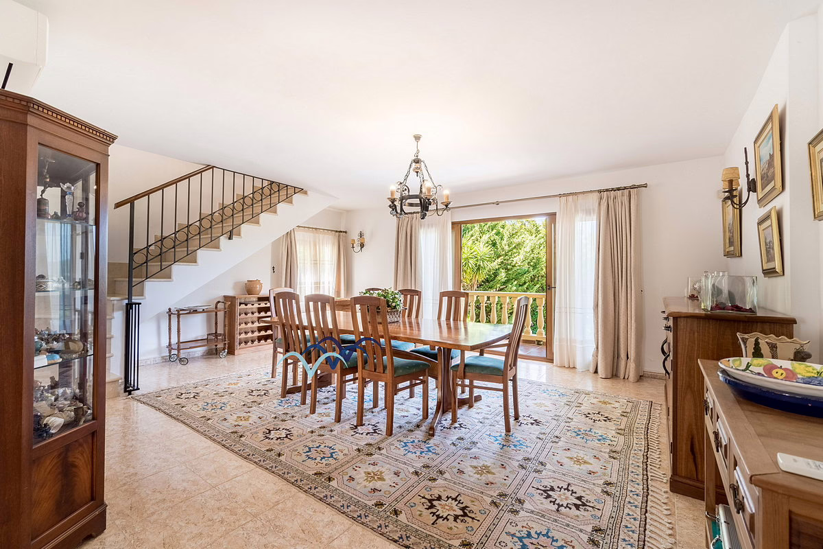 The property is equipped with reverse air conditioning in all rooms and underfloor heating in both the dining area and the top-floor bedroom. All windows are double-glazed and made of durable PVC. The swimming pool includes heating and a cover to help maintain the temperature. In addition, both staircases feature built-in child safety gates, ensuring a safe environment for families with young children. It is for sale furnished.