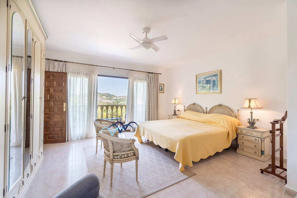 At the far end of the dining area is a staircase leading up to a spacious en-suite bedroom with its own private terrace and beautiful views.