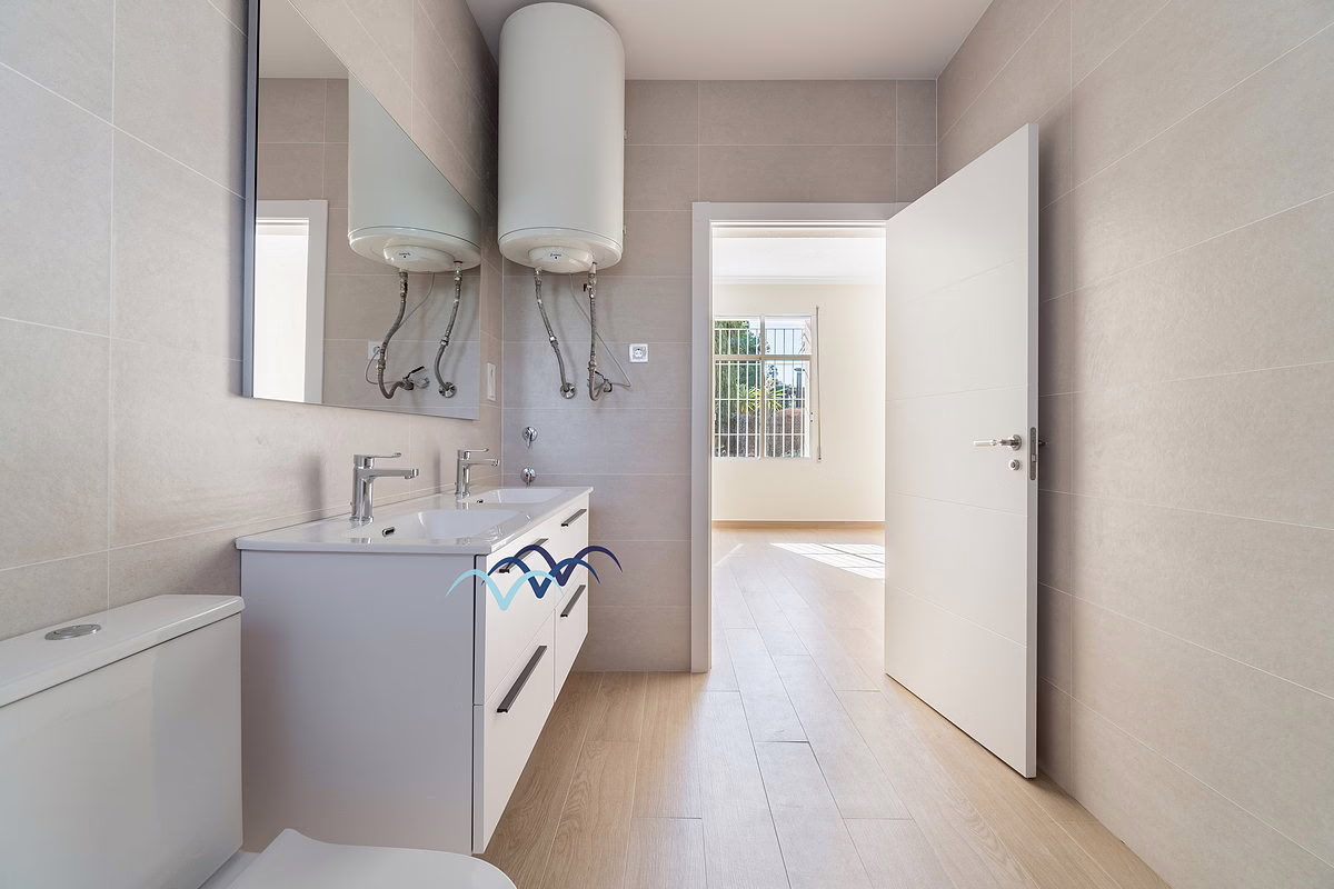 The top floor functions as a separate apartment within the house, with its own kitchen, bathroom, three bedrooms, a large front door terrace, and a balcony off the living room. While it shares the main entrance with the rest of the house, it offers an ideal space for guests or extended family.