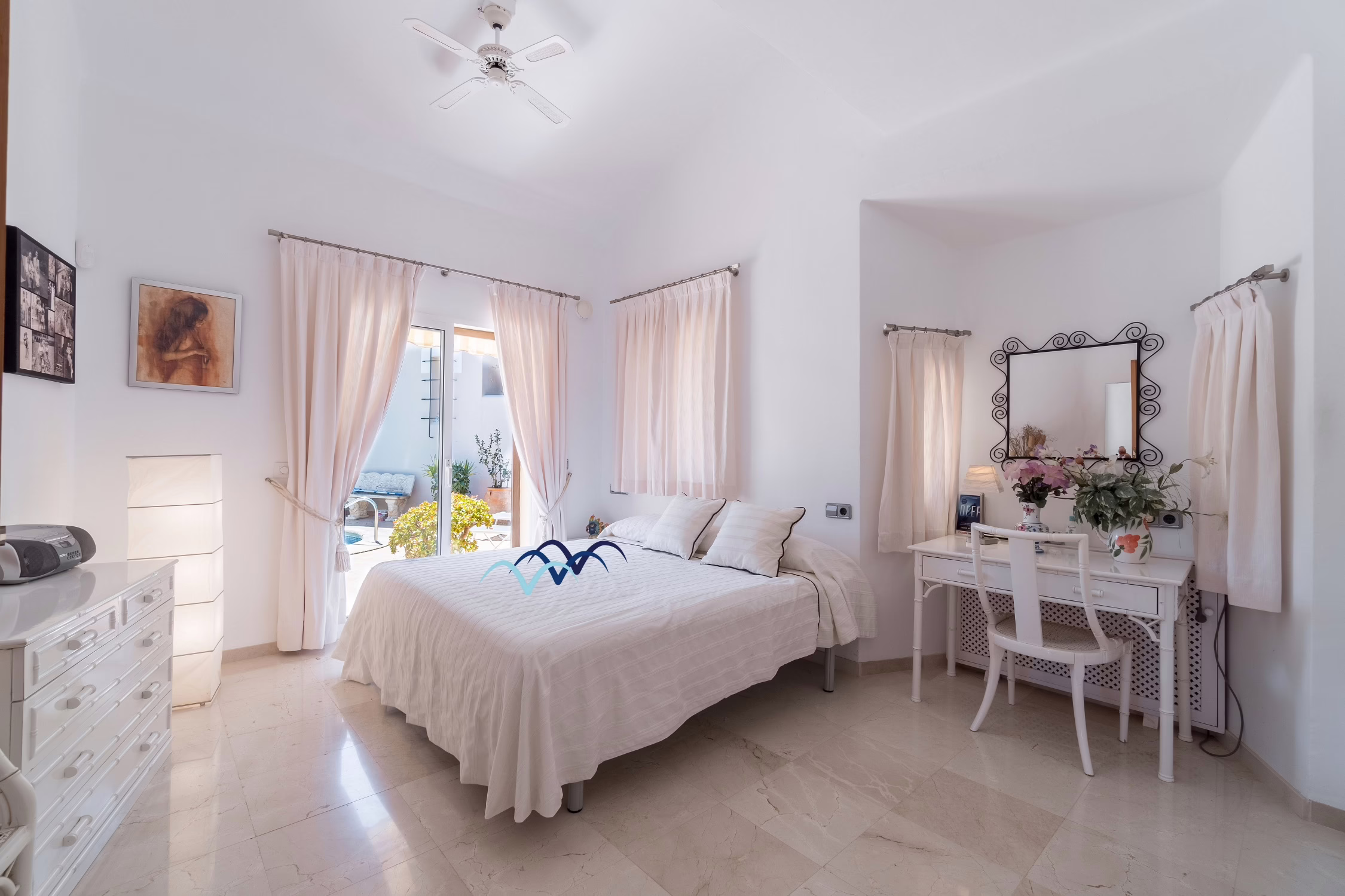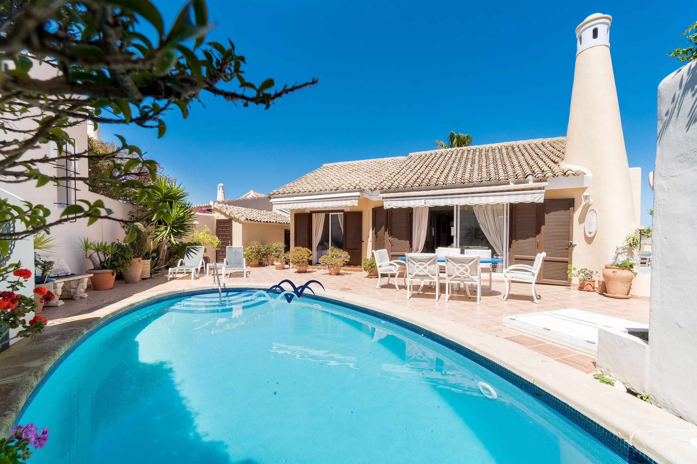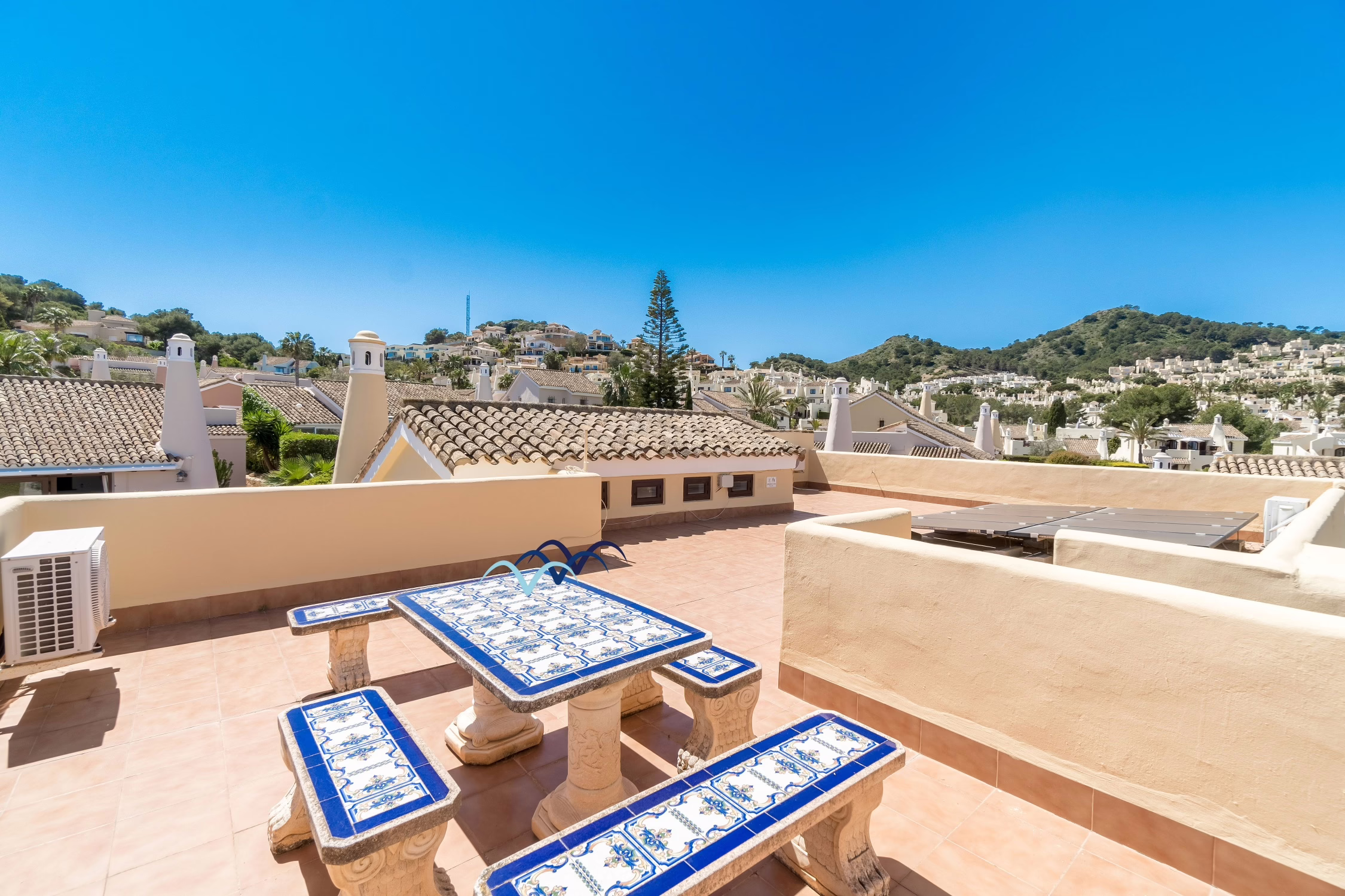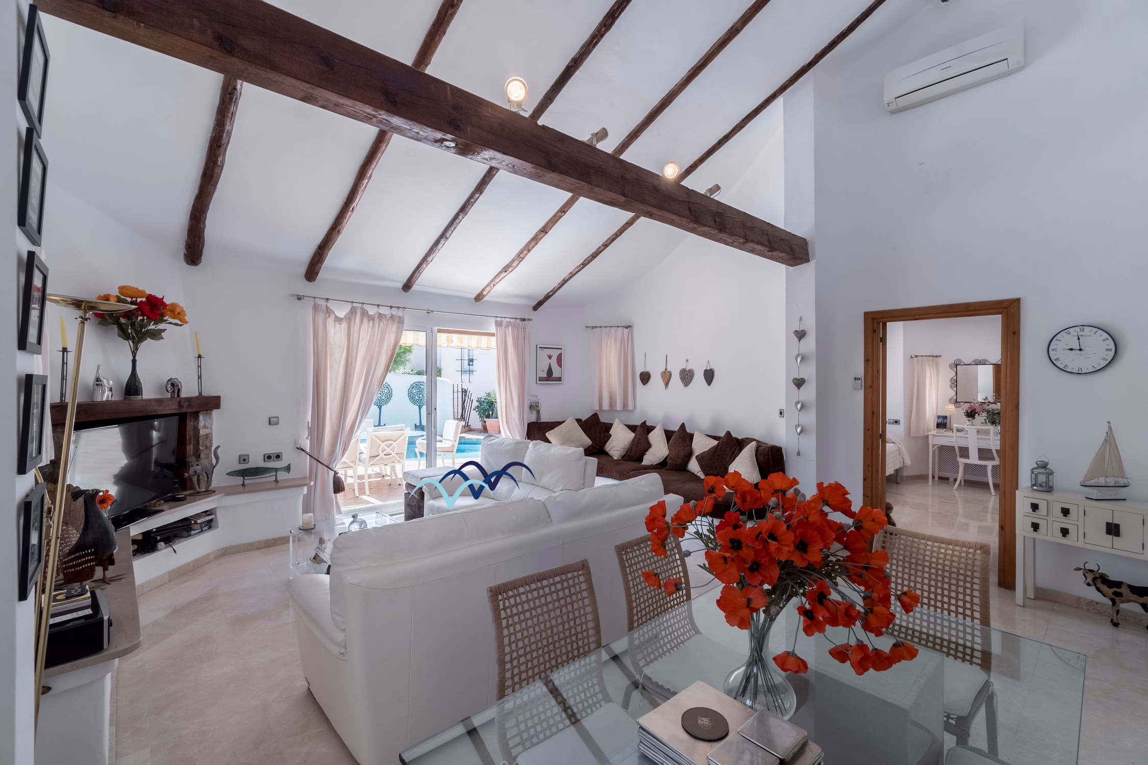 Step outside to your own private oasis. The villa features a sparkling private swimming pool surrounded by a sunny terrace, ideal for cooling off on warm Spanish afternoons or relaxing on a sun lounger with a good book. There is also outdoor dining space, perfect for enjoying al-fresco meals or evening drinks under the stars.