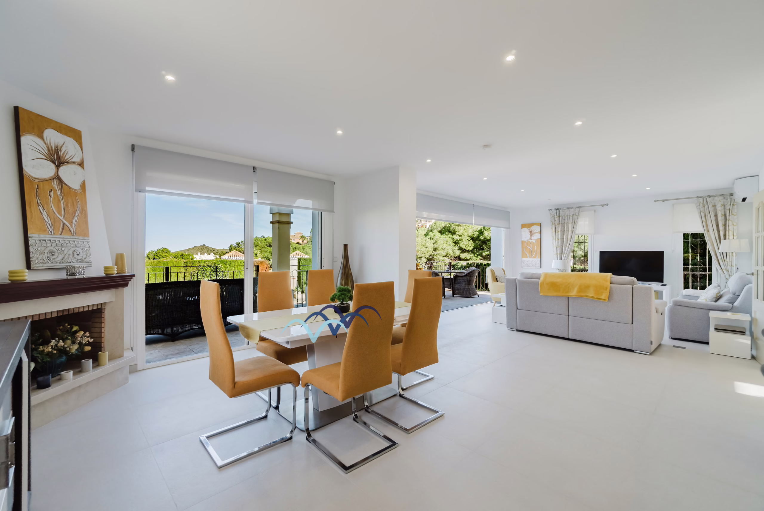 Includes hot/cool Air Conditioning in all rooms, underfloor heating in bathrooms, a fireplace with an insert and awnings in the pergolas.